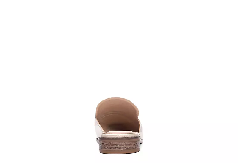 Score a big fashion hit with the CL By Laundry Score women’s mule. Featuring a metallic faux leather upper with goldtone hardware accent on the vamp, this slip-on shoe also has a chic squared, almond toe. The footbed soothes your foot while the sole adds durability.